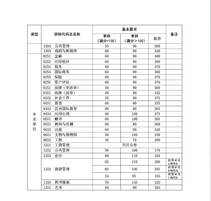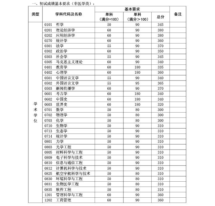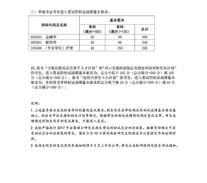 复旦大学2017年硕士研究生招生考试考生进入复试的初试成绩基本要求